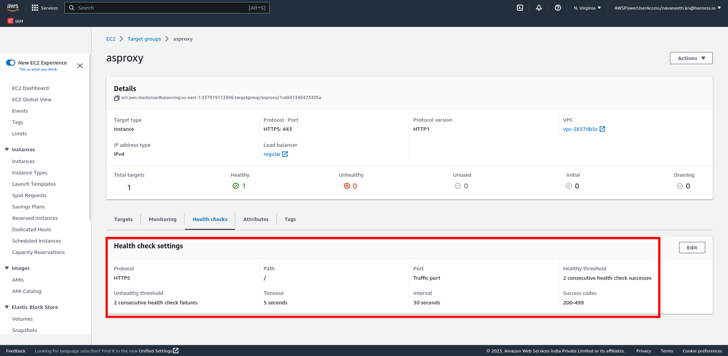 4. Configure the health check settings as per the port information. Success codes should be configured to be a range from 200-499.