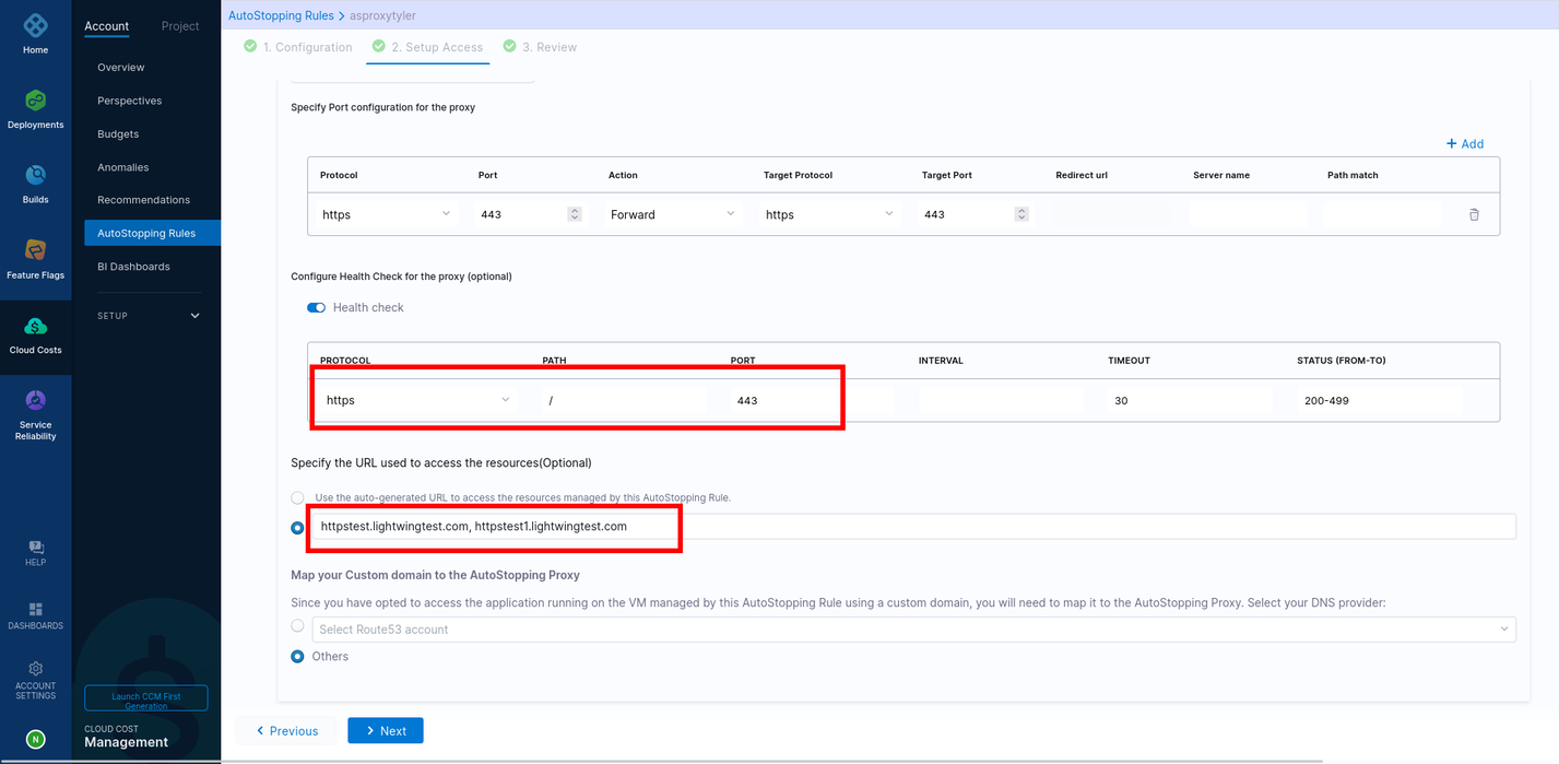 • Create AutoStopping rule with HTTP/HTTPS workload and configure custom domains in the AutoStopping rule.