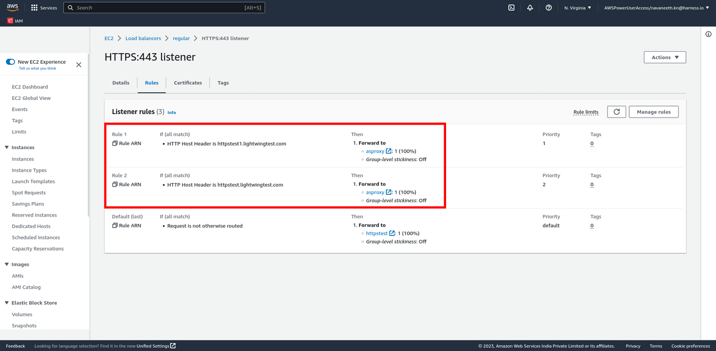 • Edit ALB rules and add forwarding action to the proxy target group.