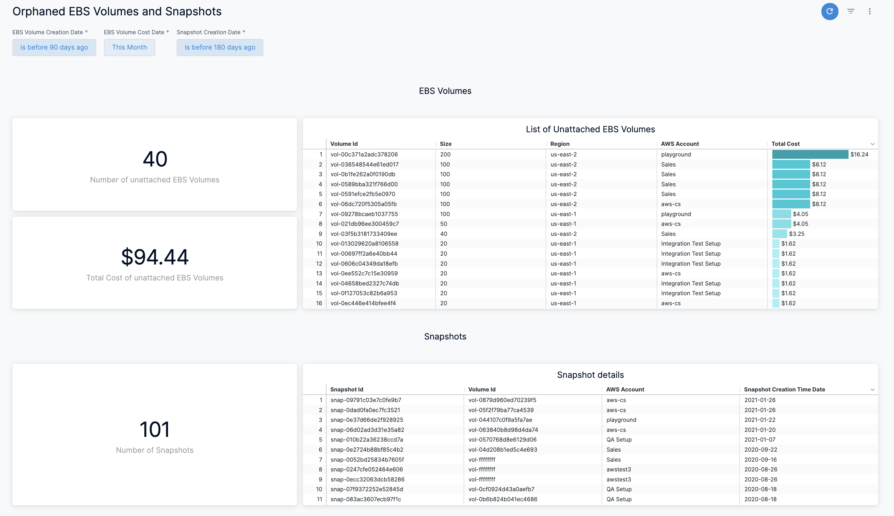 View Orphaned EBS Volumes and Snapshots Dashboard