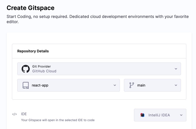 3. Click Create Gitspace.