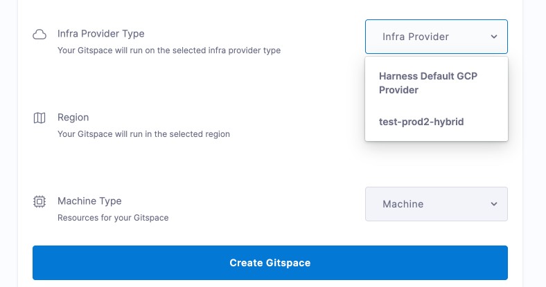 • Harness Hosted → Choose from available machine types (see supported machines).