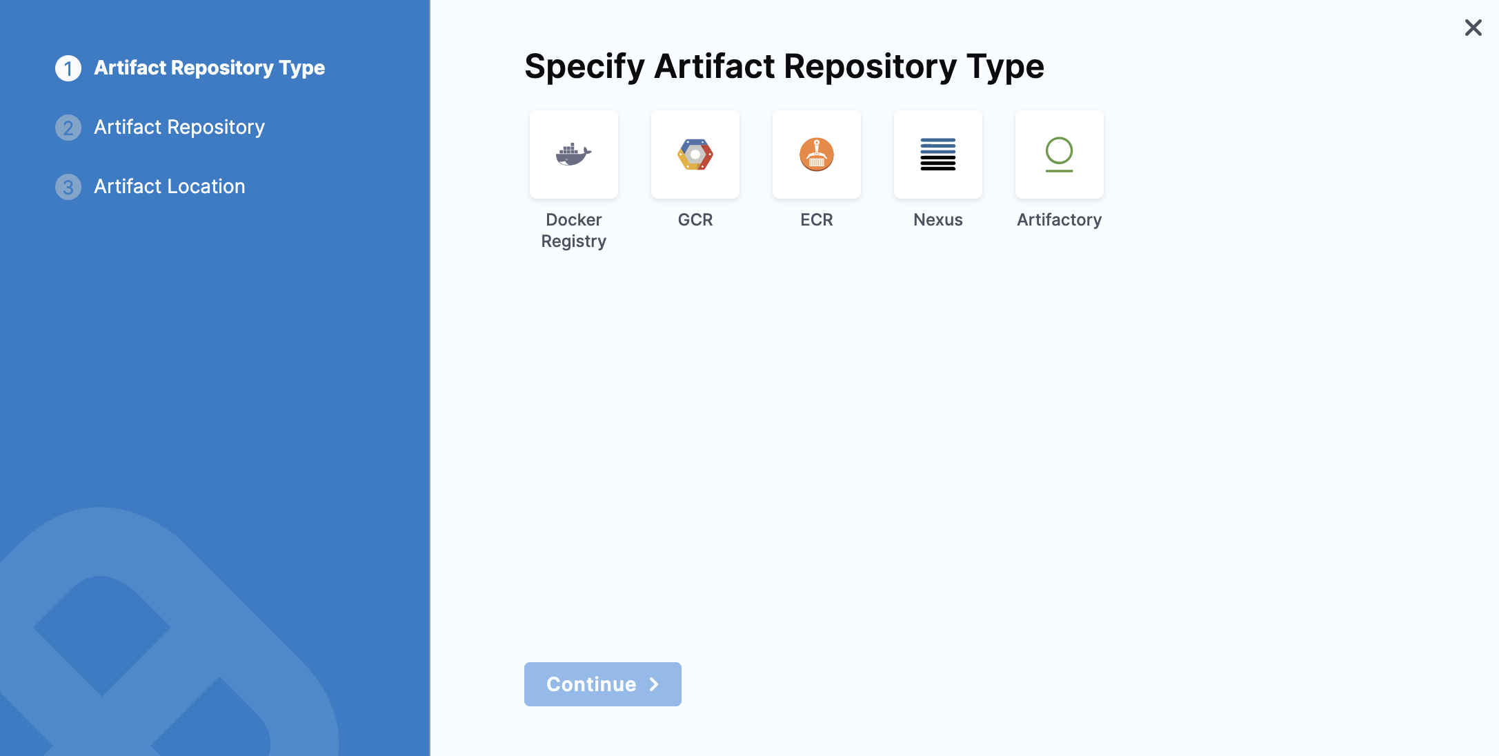https://registry.hub.docker.com/v2/. To connect to a private Docker registry, usehttps://index.docker.io/v2/.Click Continue. - In Image path, enter the name of the artifact you want to deploy, such as library/nginx.