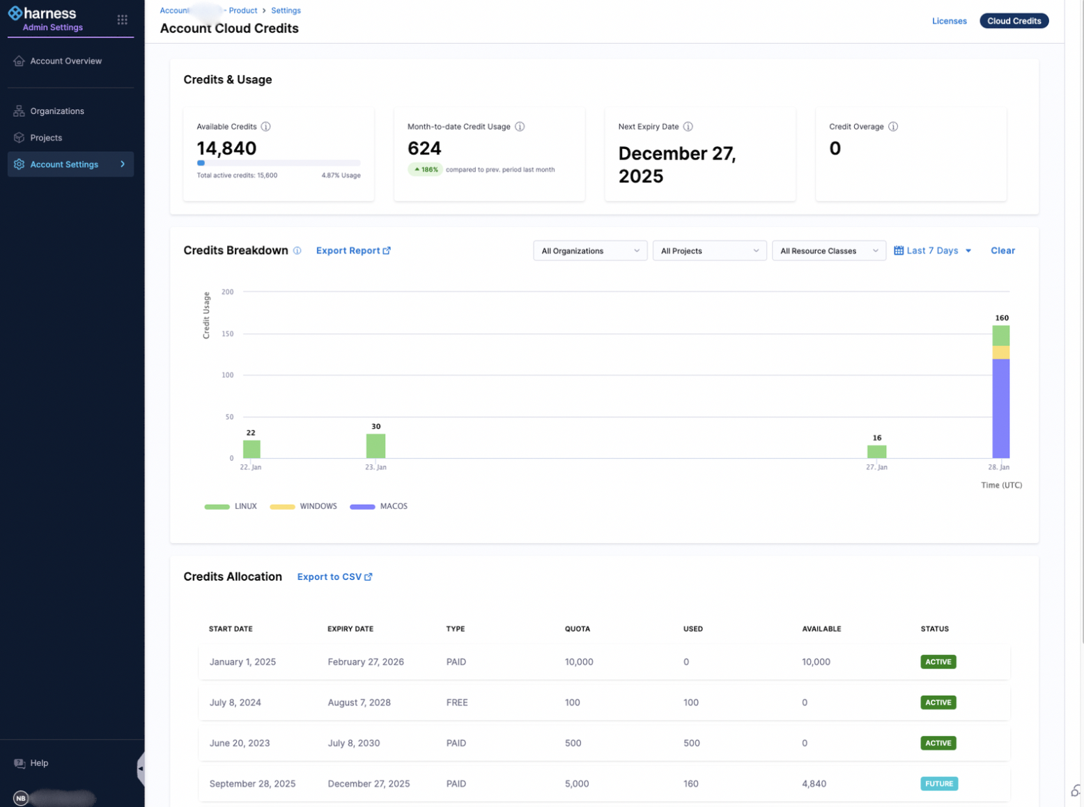 Cloud credits can be consumed by all users within the account registered to run pipelines on Harness Cloud.