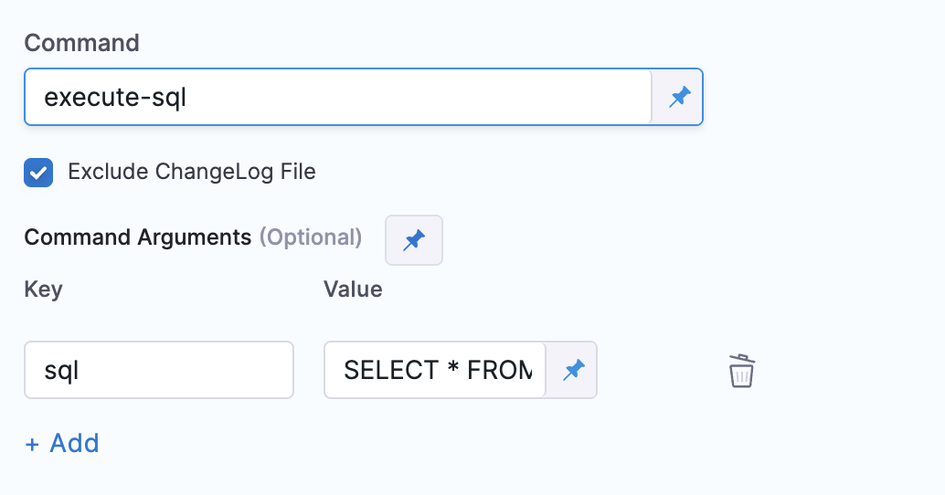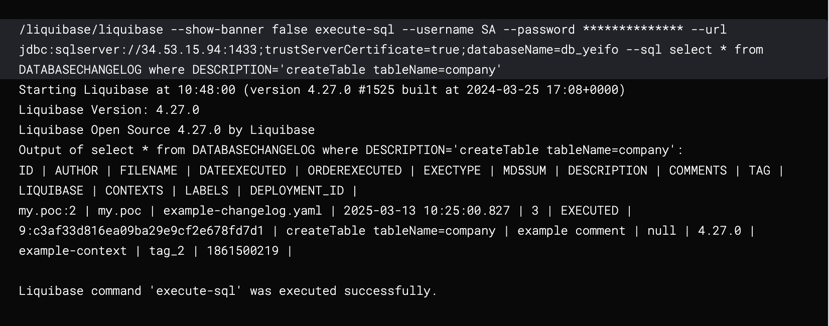 Using the LiquibaseCommand step we can execute arbitrary SQL commands using the execute-sql command. This allows users to define raw SQL, simplifying workflows that require direct SQL execution.