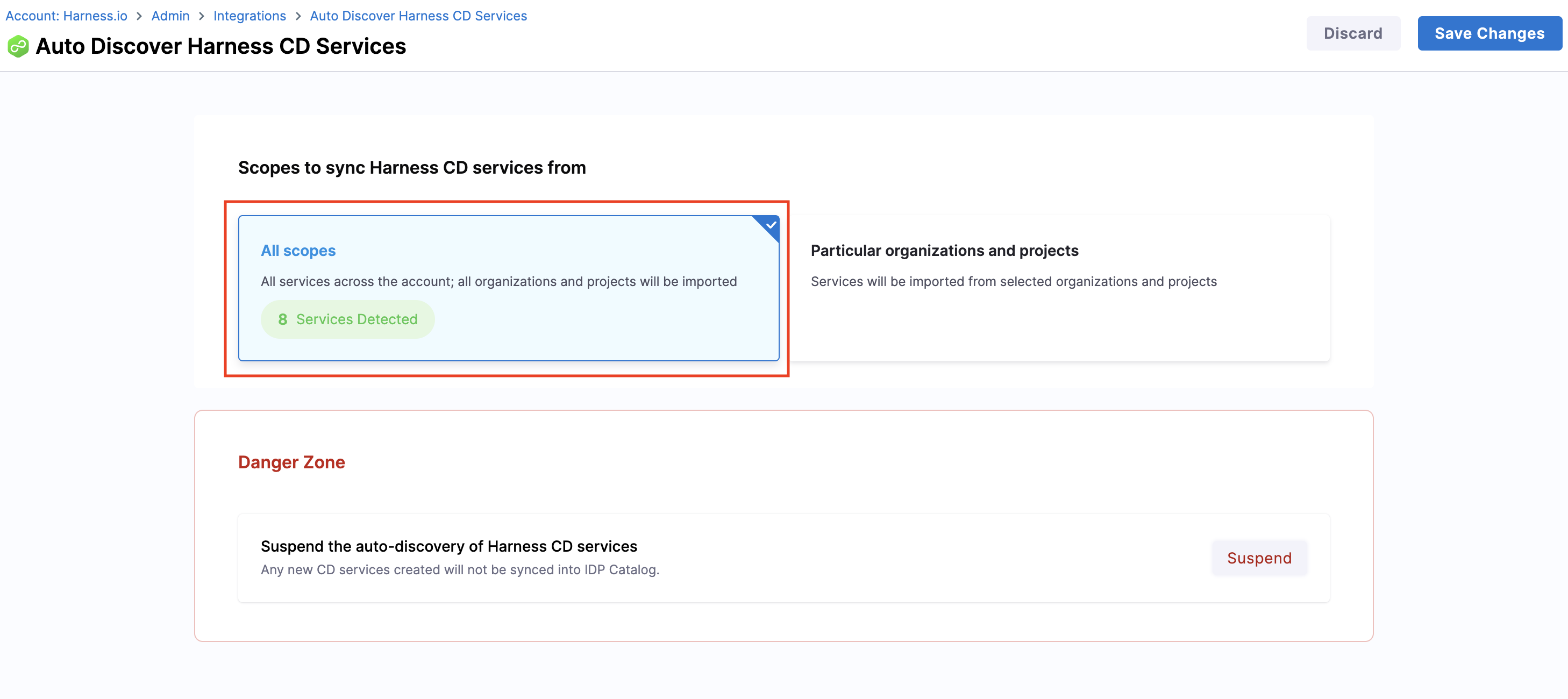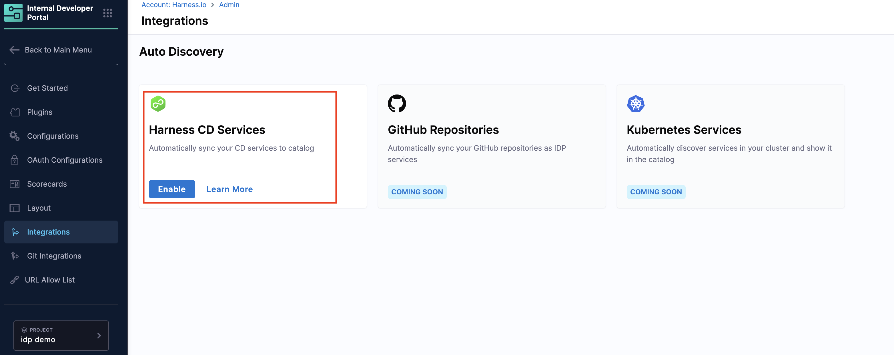 1. The feature flag IDP_CATALOG_CD_AUTO_DISCOVERY is enabled. Contact Harness Support to enable it.