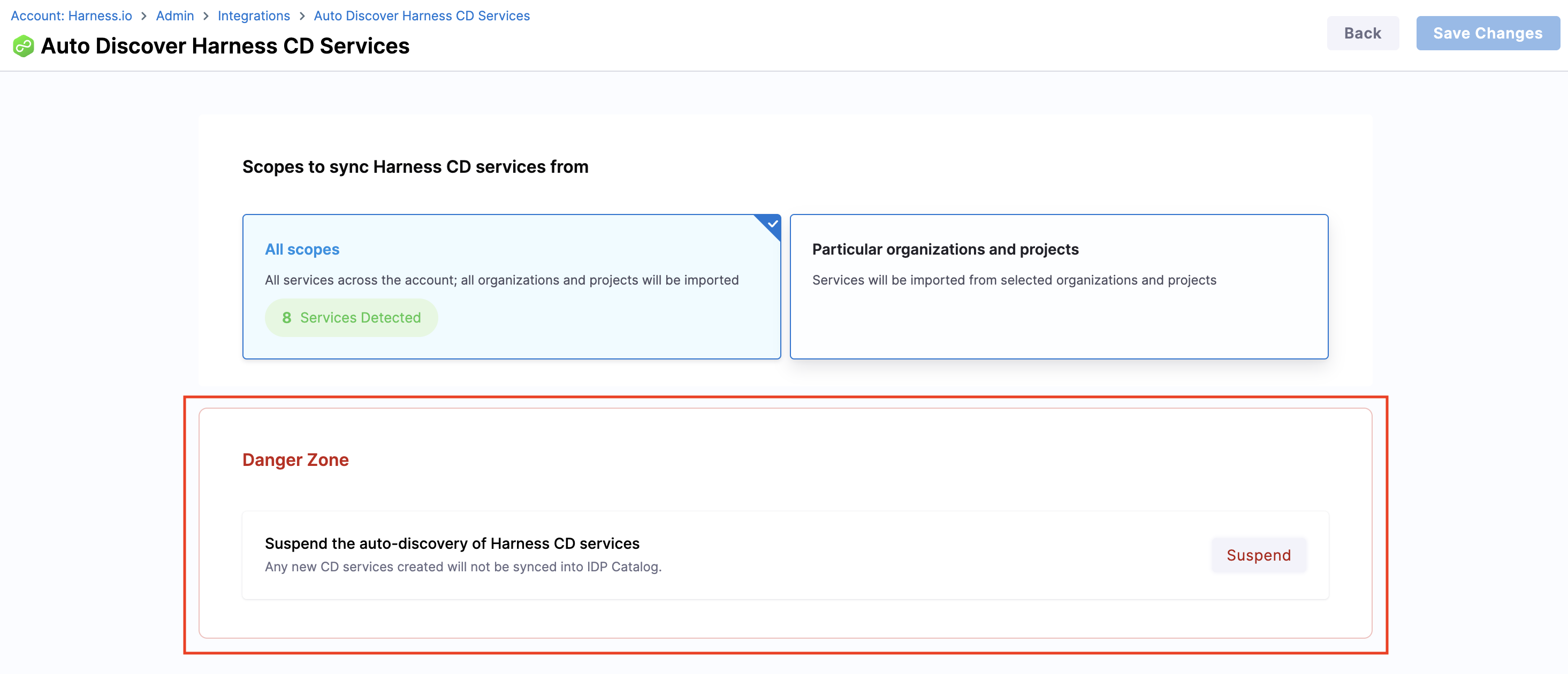 • RBAC: You can view and sync services from the same projects and organizations you have access to in Harness CD.