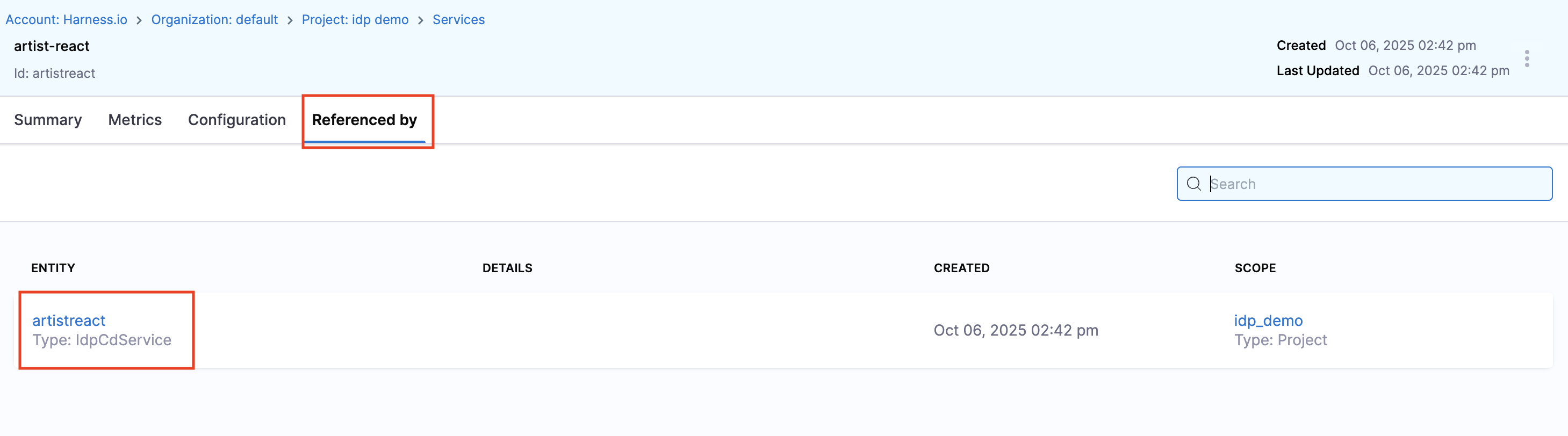 • IDP entities created: Each CD service appears in Catalog as an IDP entity with: