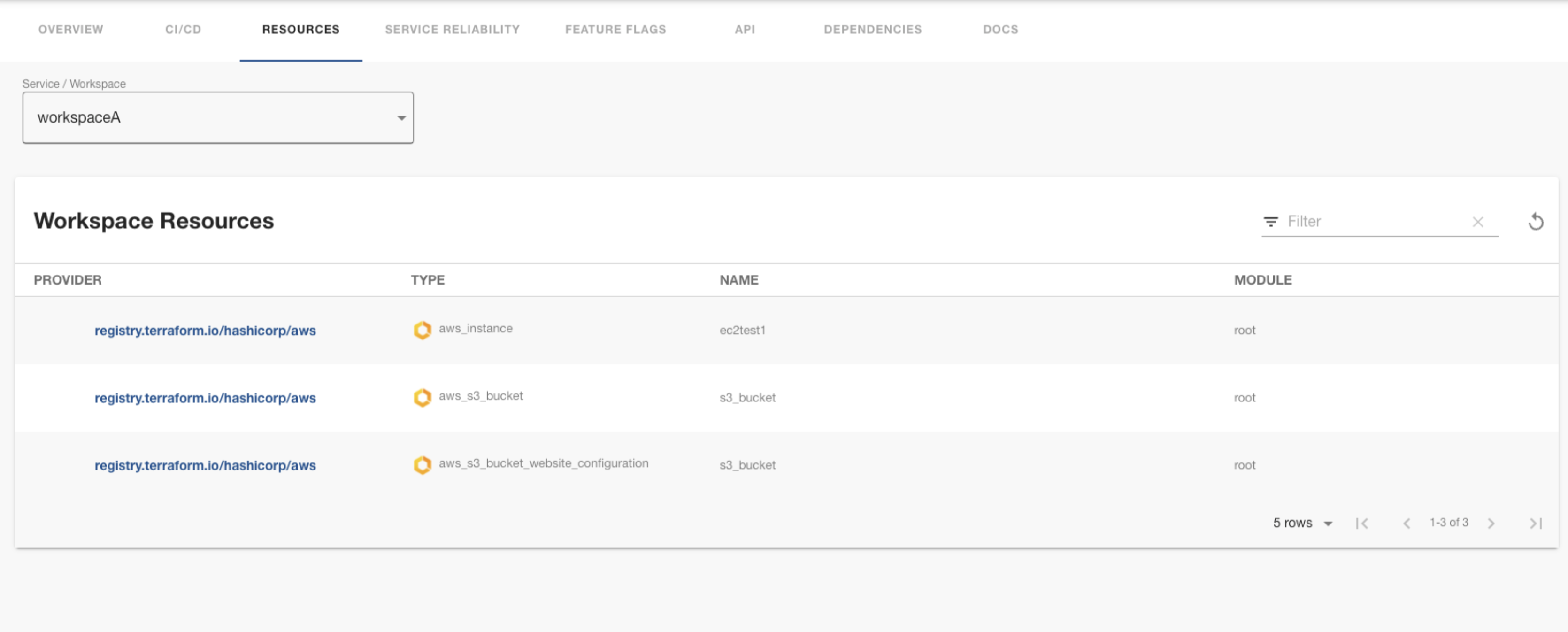 To configure the plugin for a service in the software catalog, set one or both of the following annotations in its catalog-info.yaml definition file, you can fetch the workspaces URL from the workspaces page. Note that the URL should be in the format of https://app.harness.io/ng/account/<ACCOUNT_ID>/module/iacm/orgs/<ORGANIZATION_ID/projects/<PROJECT_ID/workspaces/<WORKSPACE_ID/resources