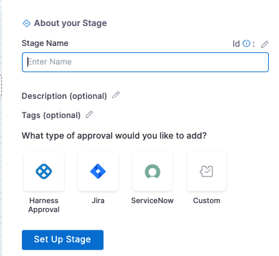 ServiceNow Approval step: you can add a ServiceNow Approval step to any Pipeline or Approval stage.