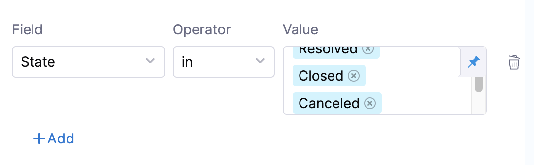 Statefield to be inResolved,Closed, orCancelledcan be specified as:
