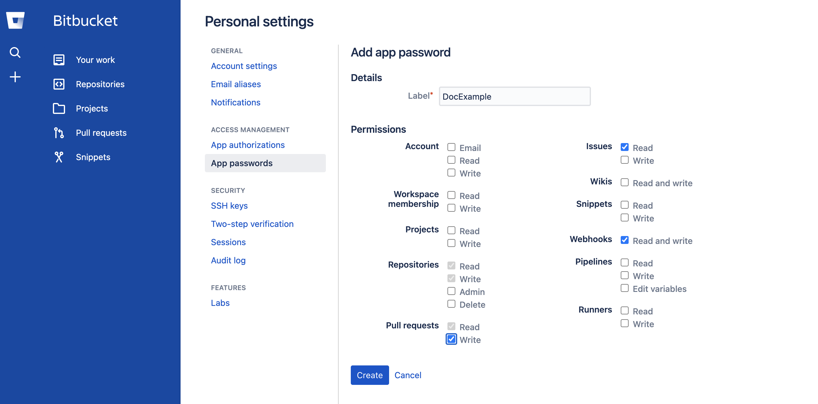 Bitbucket accounts with two-factor authentication must use access tokens.