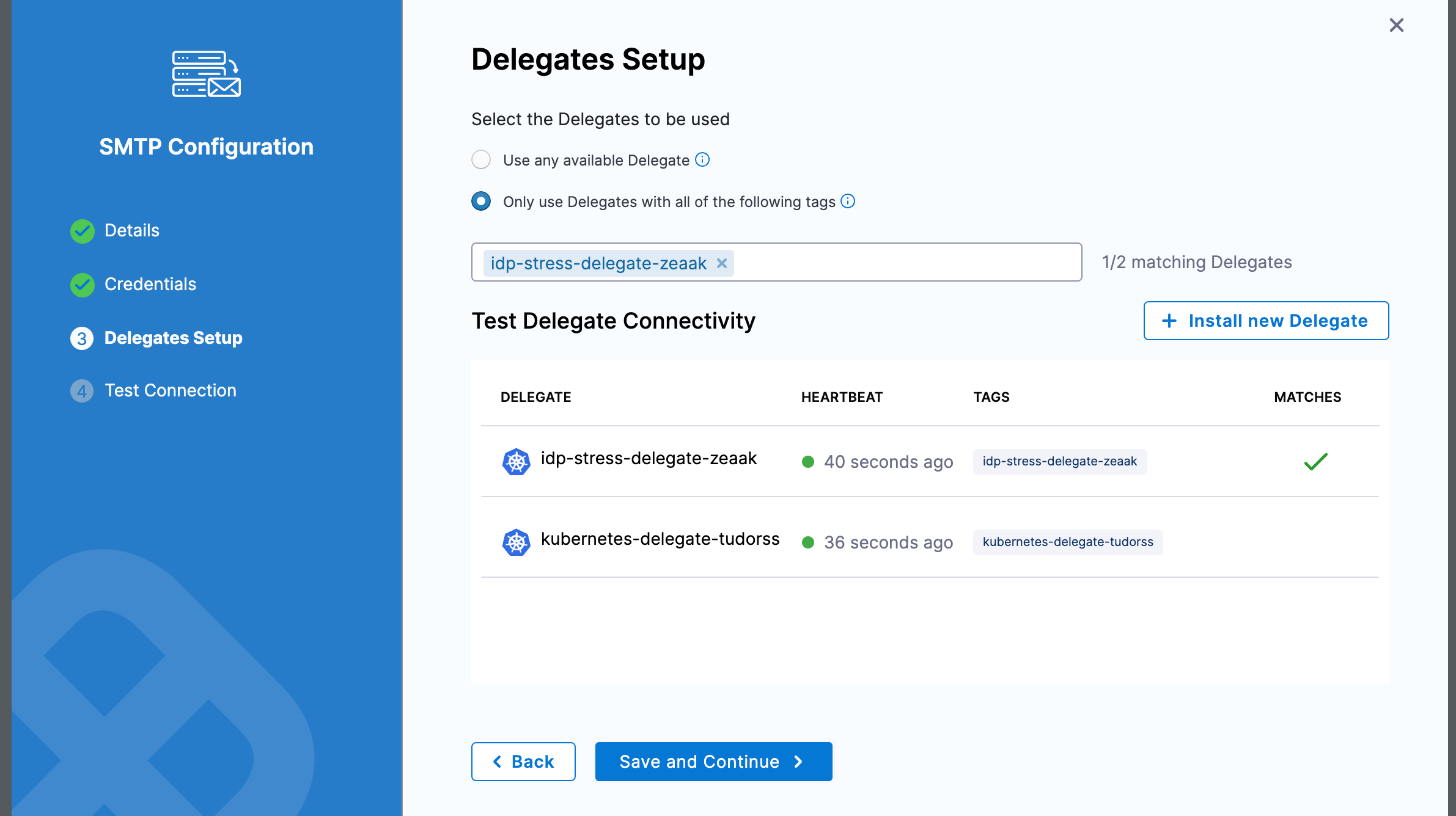 In Delegates Setup, use Selectors to select any specific Delegates you want to use.
