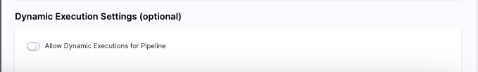 To execute a pipeline dynamically, the pipeline must already exist in the UI. The pipeline-level setting for dynamic execution will only be visible once the Account-Level Setting is enabled.