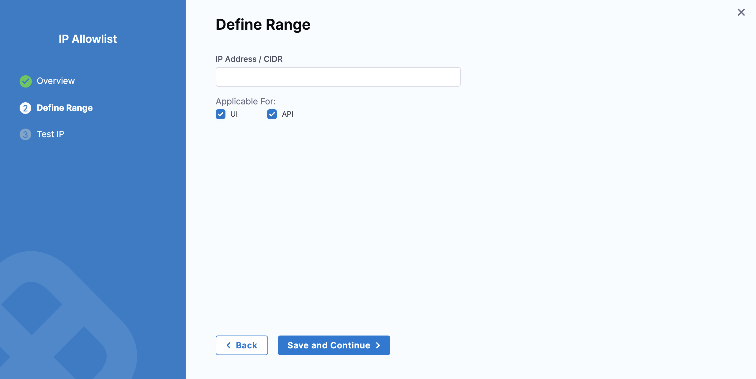 • Make sure you have View, Create/Edit, and Delete permissions for Authentication Settings to add and manage IP allowlists.