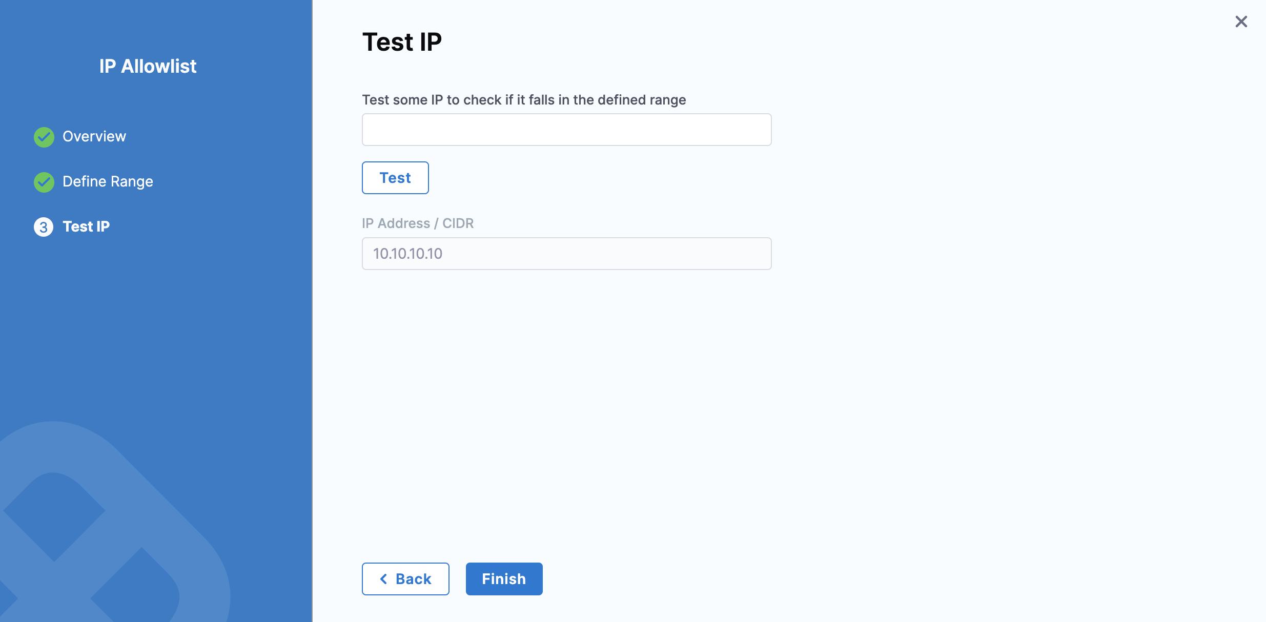 1. Enter an IP address to check if it falls within the IP address range configured in the previous step.