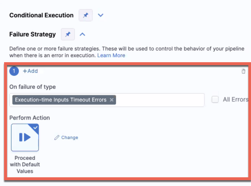- For On failure of type, select Execution-time Inputs Timeout Errors.