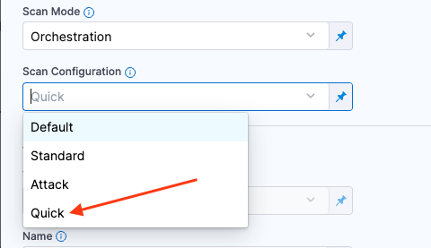 2. Set the Scan Configuration to Quick. With this mode enabled, the Maximum depth to crawl is set to 1.
