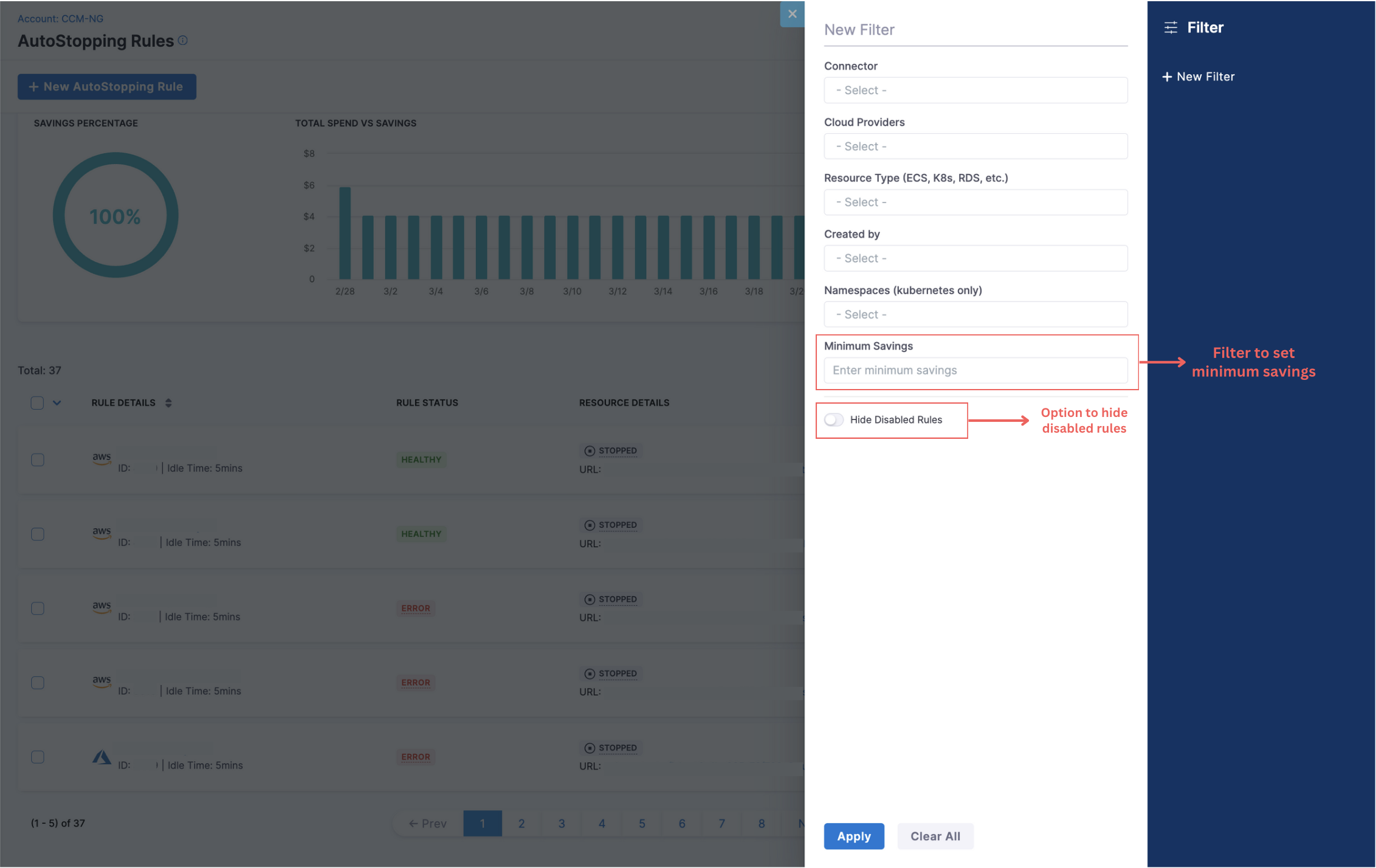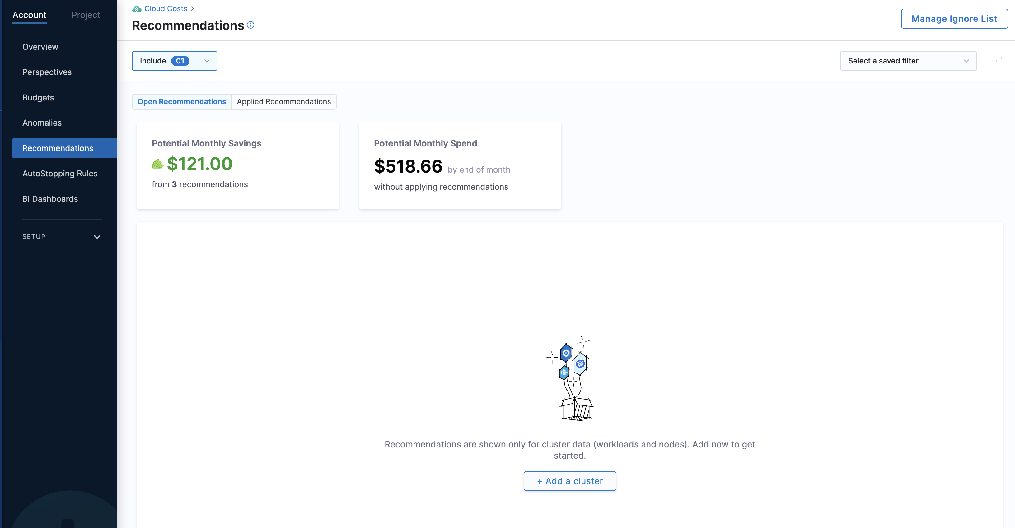 New Filters in Cloud Integration: We have added new filters on Account Settings > Integration for Cloud Cost.