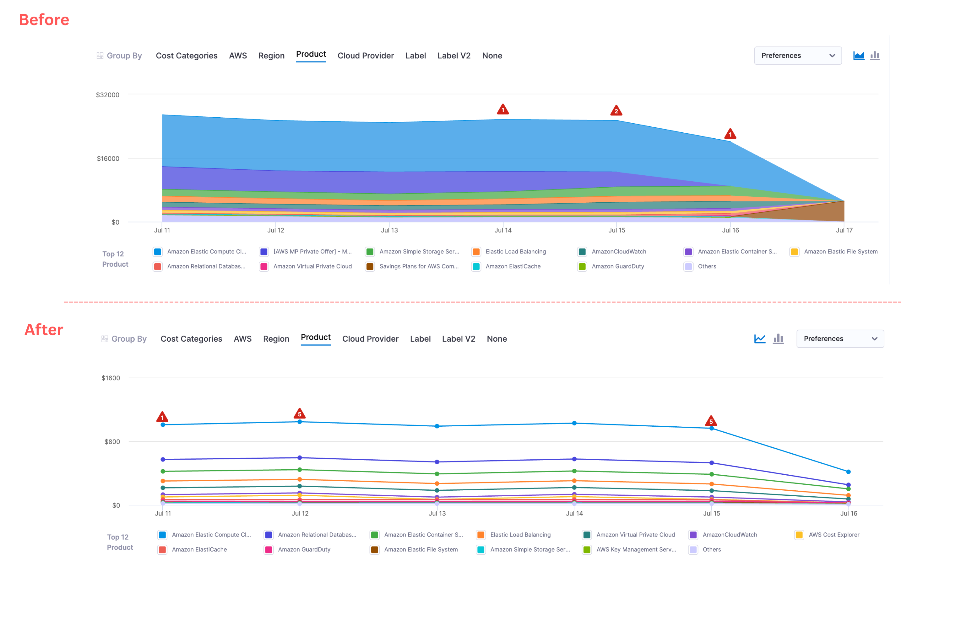 - Perspective Page Improvements: CCM has removed the 'Apply Filter' functionality from the anomalies tooltip on the Perspective page. Anomalies now correctly honor the perspective data aggregation value. [CCM-26647]