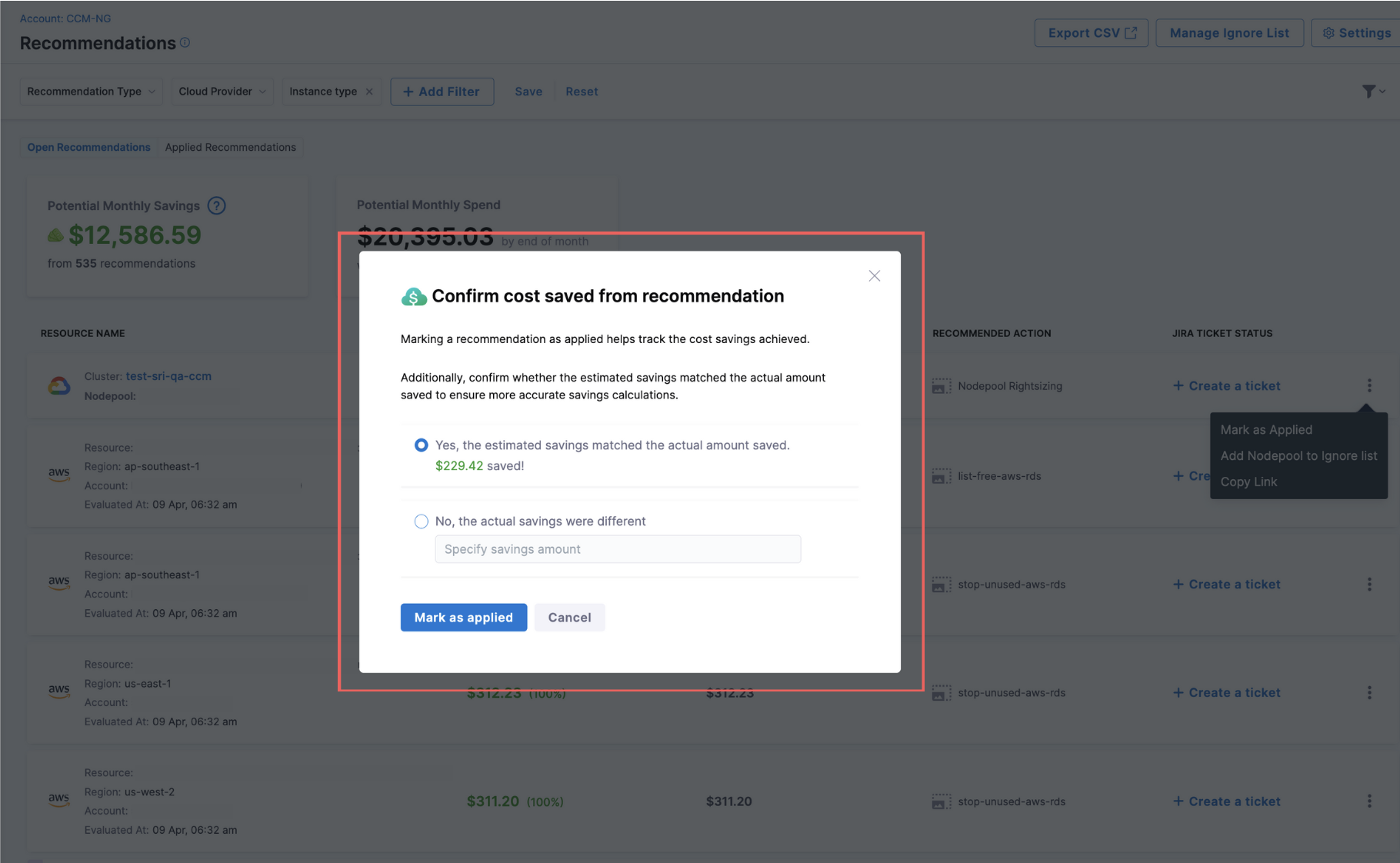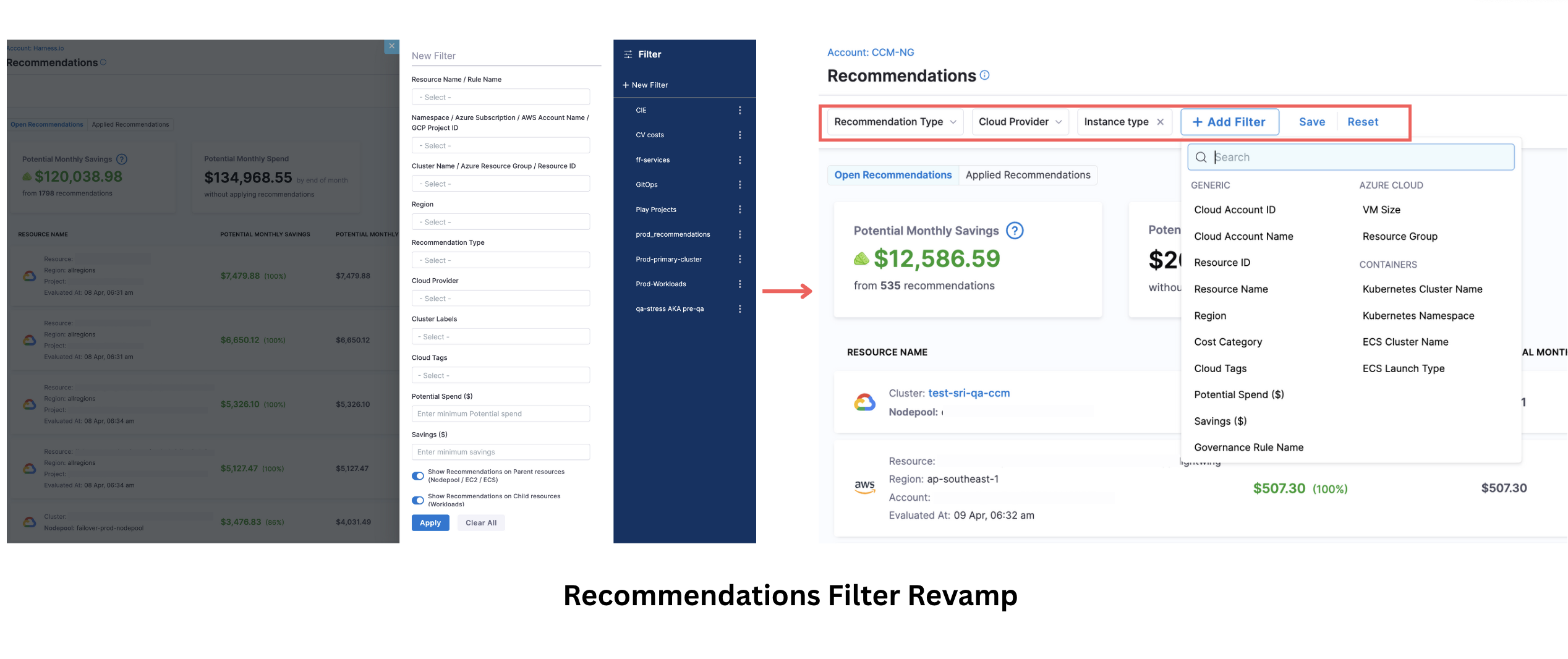 - Azure Resource Group Filtering: Added support for filtering recommendations by Azure Resource Group, aligning with Perspectives functionality and enabling more targeted cost optimization strategies. [CCM-25175]
