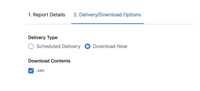 Note that, Download as CSV supports all time range options but scheduling is limited to some time range.